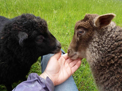 If he doesn't sell as a potential flock sire, we will wether him and try to find a fiber pet for him. Except for the uncomfortable procedure, he would probably vote for the latter, if it meant he could get a lot more of that feel-good lovin'!That's it for today from . . .