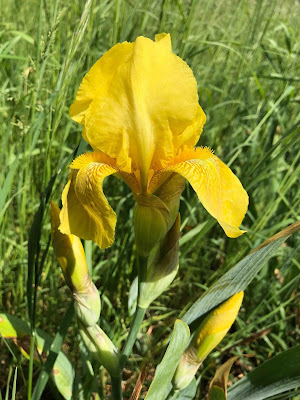 The iris parade continues. The first three are peeking out of the tall pasture grass out by our entrance gate.