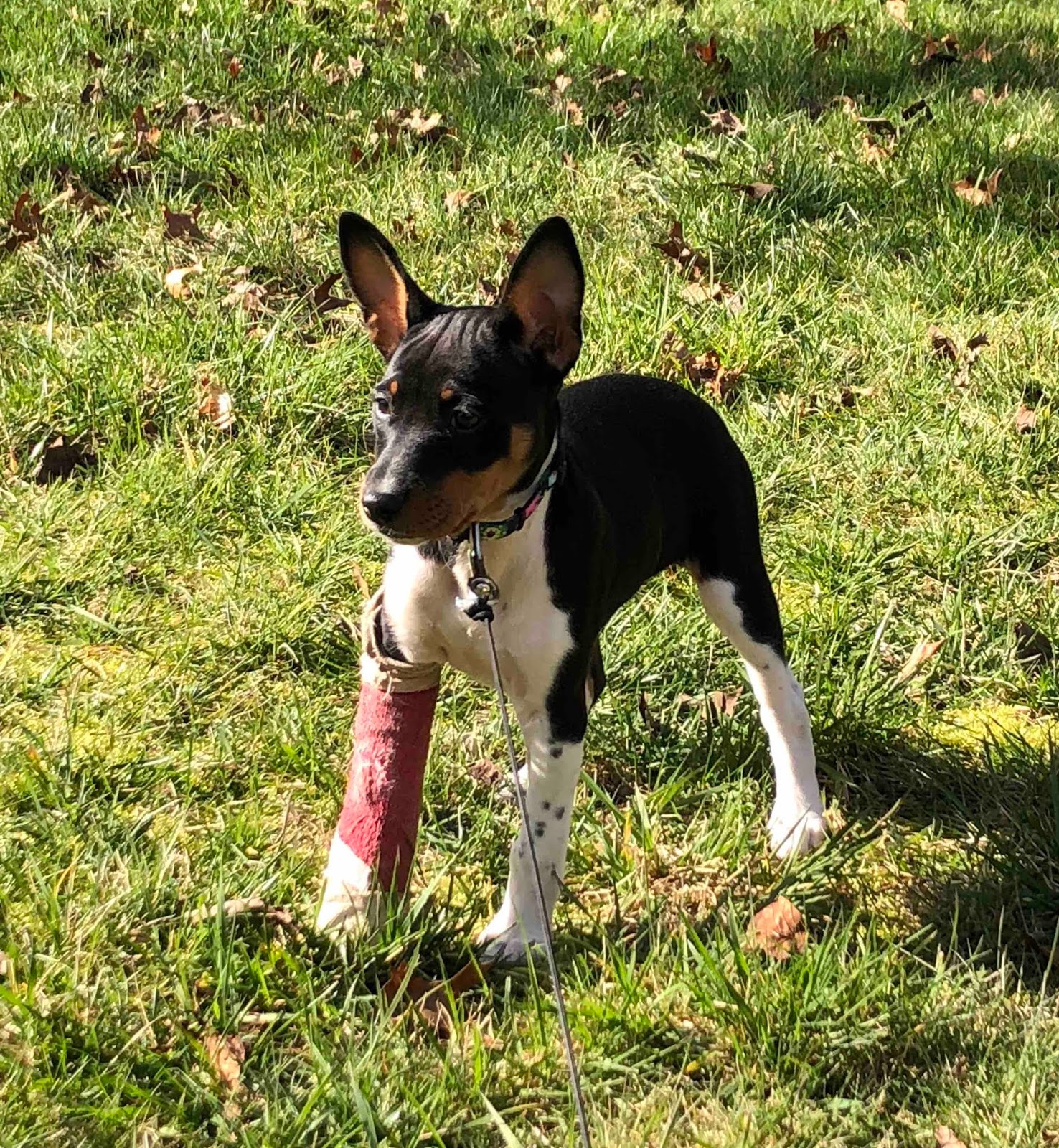 This evening it was all hands on deck to change Poppy's splint; tough terriers don't like to be restrained. I hoped to take photos of her leg but didn't have a spare hand. The paw is no longer swollen but her carpus is hyperextended, which is to be expected from wearing the splint. It will take some time for everything to strengthen and straighten back out once she has healed up.