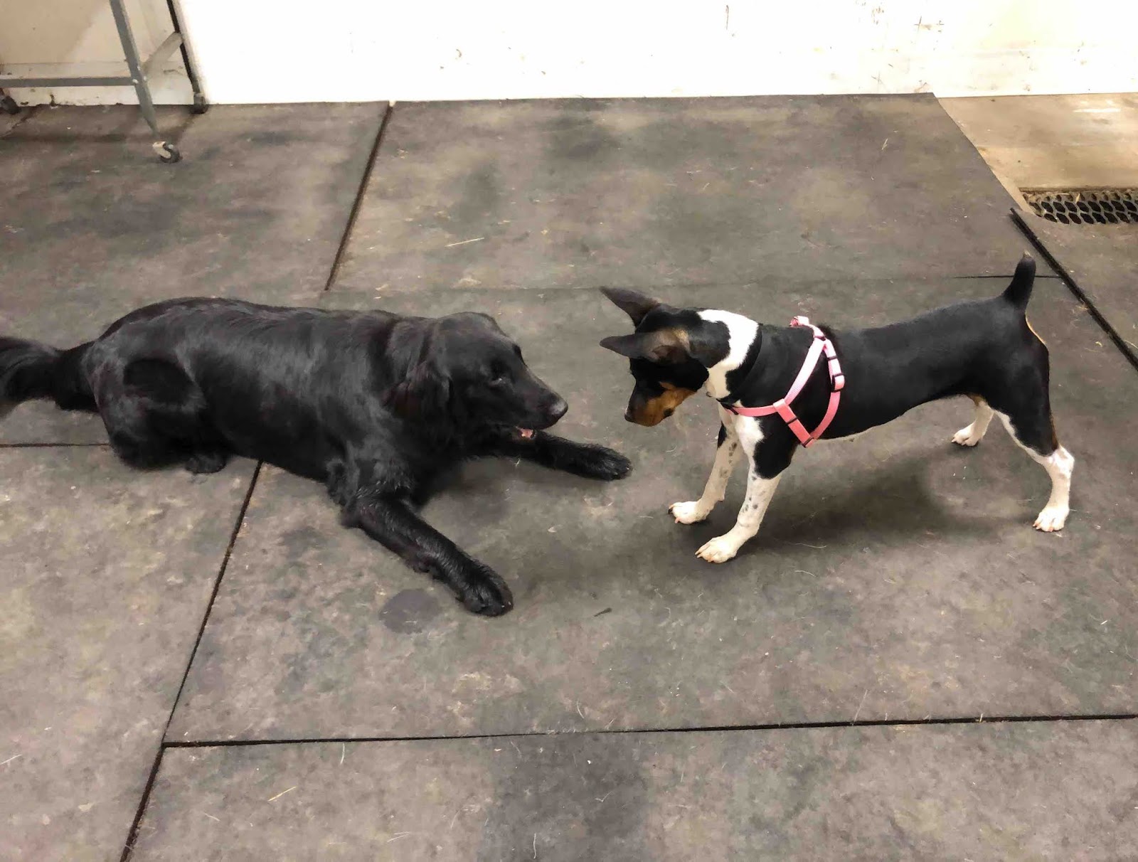 Will this heat cycle never end??? It does, finally, seem to be waning, and Rick confirmed that with cytology today – but she's still not safe to socialize with the intact neighbor boy. Poppy really needs regular romps with other dogs; humans just don't cut it in the energy expenditure department. She did get to play with her sister after we finished hauling hay Sunday before last; Penny and her people were going out of town and they were showing me what needed to be watered.